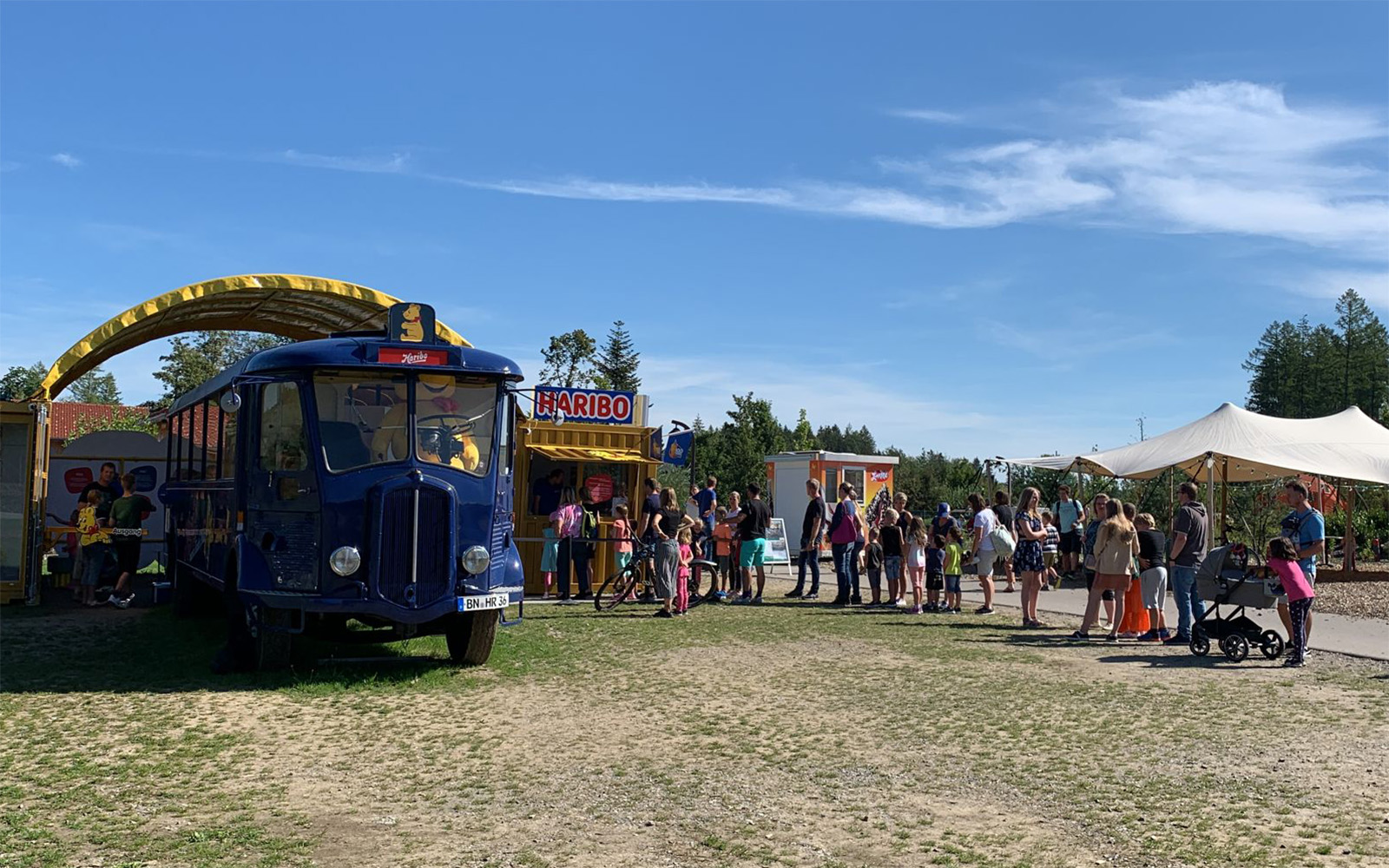 B+D is responsible for the module, security, and hygiene concepts, staff provision, location scouting, tour planning, and logistics management – you name it. In a historic HARIBO vintage bus transformed into a museum, various exhibits from the history of the traditional company can be admired. Additionally, a creatively designed location with two converted overseas containers provides space for further multimedia attractions. The centerpiece is a “Gold Bears Machine,” where both young and old can not only witness the live production of the famous candy but also enjoy it at the push of a button. The campaign takes place over a period of 56 days in 5 German cities, attracting over 50,000 visitors.
