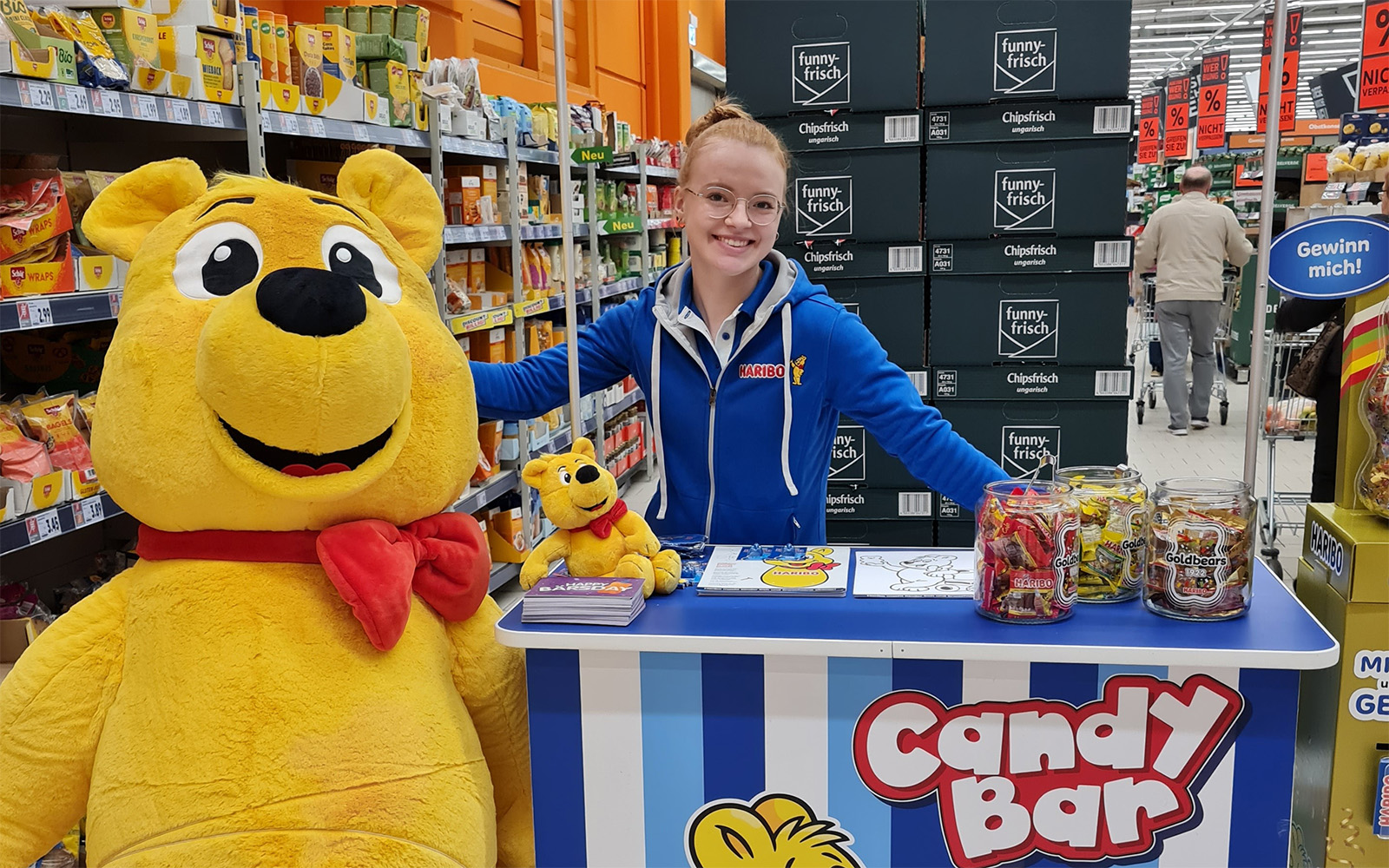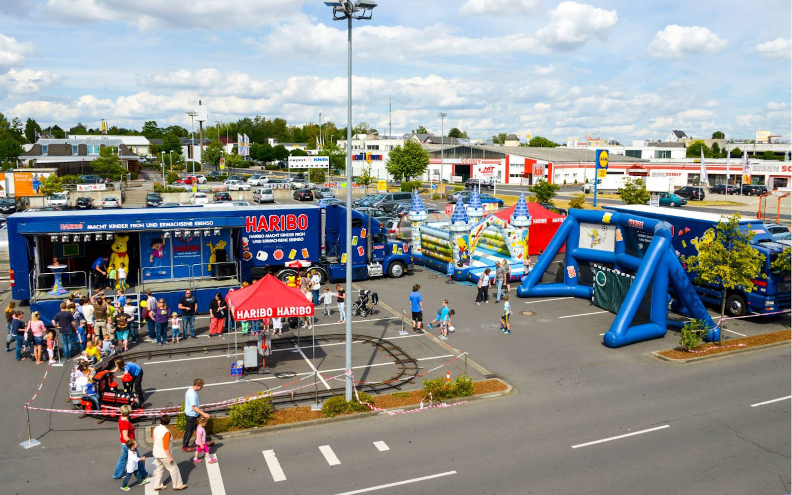 Inside and beside the truck, both children and adults can have fun with numerous branded games and interactive tools. Samplings are distributed, and the brand is brought to life in a close and tangible way. Also included as a walking act is, of course, the centerpiece of the brand: the Gold Bear. Simultaneously, in various markets, additional promotion actions, such as a HARIBO “Candy-Bar,” take place.