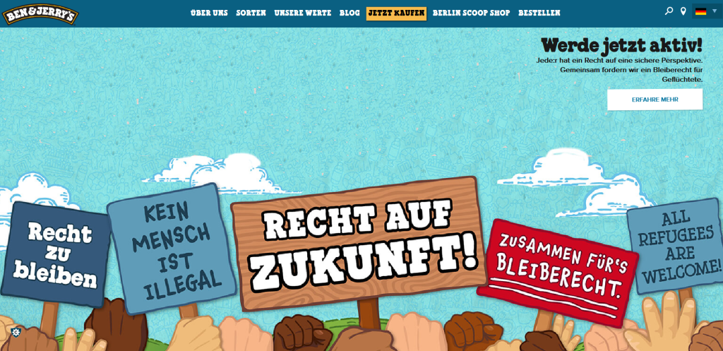 An exciting example is Ben & Jerry’s: in 2018, the company released a packaging design with the inscription “RESIST” as a protest against Donald Trump’s policies. Additionally, they are calling for protests against him on their channels. It’s an active move by the brand on a controversial issue – one that divides the U.S. like no other. Another practical example is Patagonia: already in 2011, they spoke out firmly against fast fashion and “advertised” their jacket with the slogan “don’t buy this jacket”.